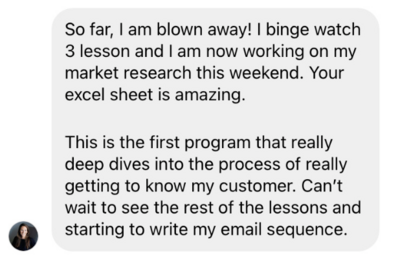"I wanted to let you know that I used your sales call masterclass to help prep for a clarity call with a lead and it worked! He wants a 3-month retainer of blog posts, which is a huge win!"